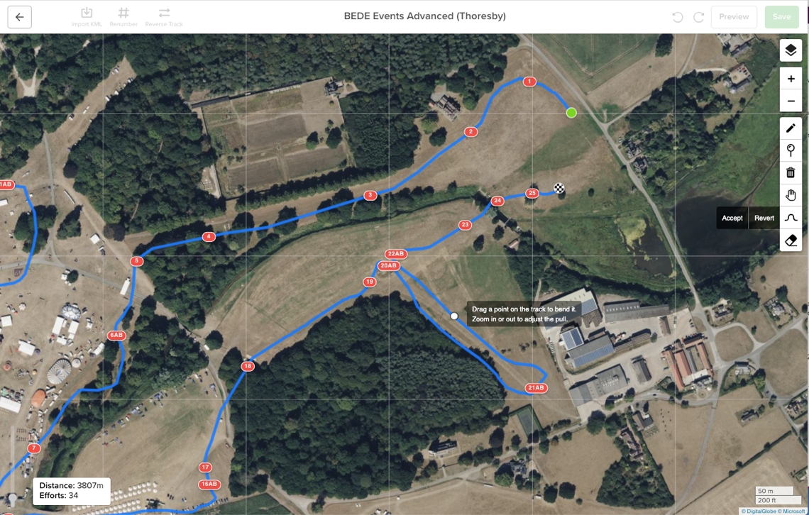 Draw a track from scratch. Add fences. Reverse or drag the track, recalculate length and efforts. Experiment in the comfort of your office.